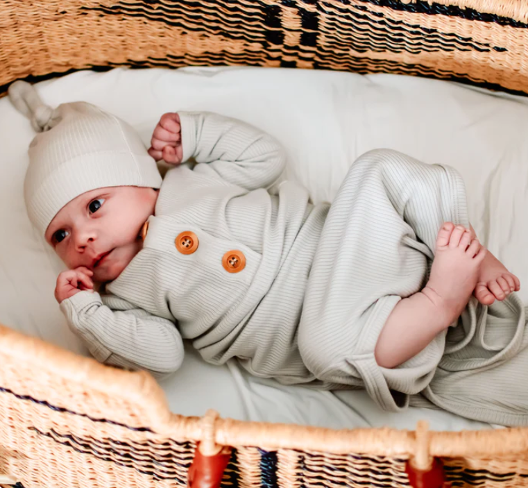 kyte Ribbed Knotted Gown with Hat Set in oat