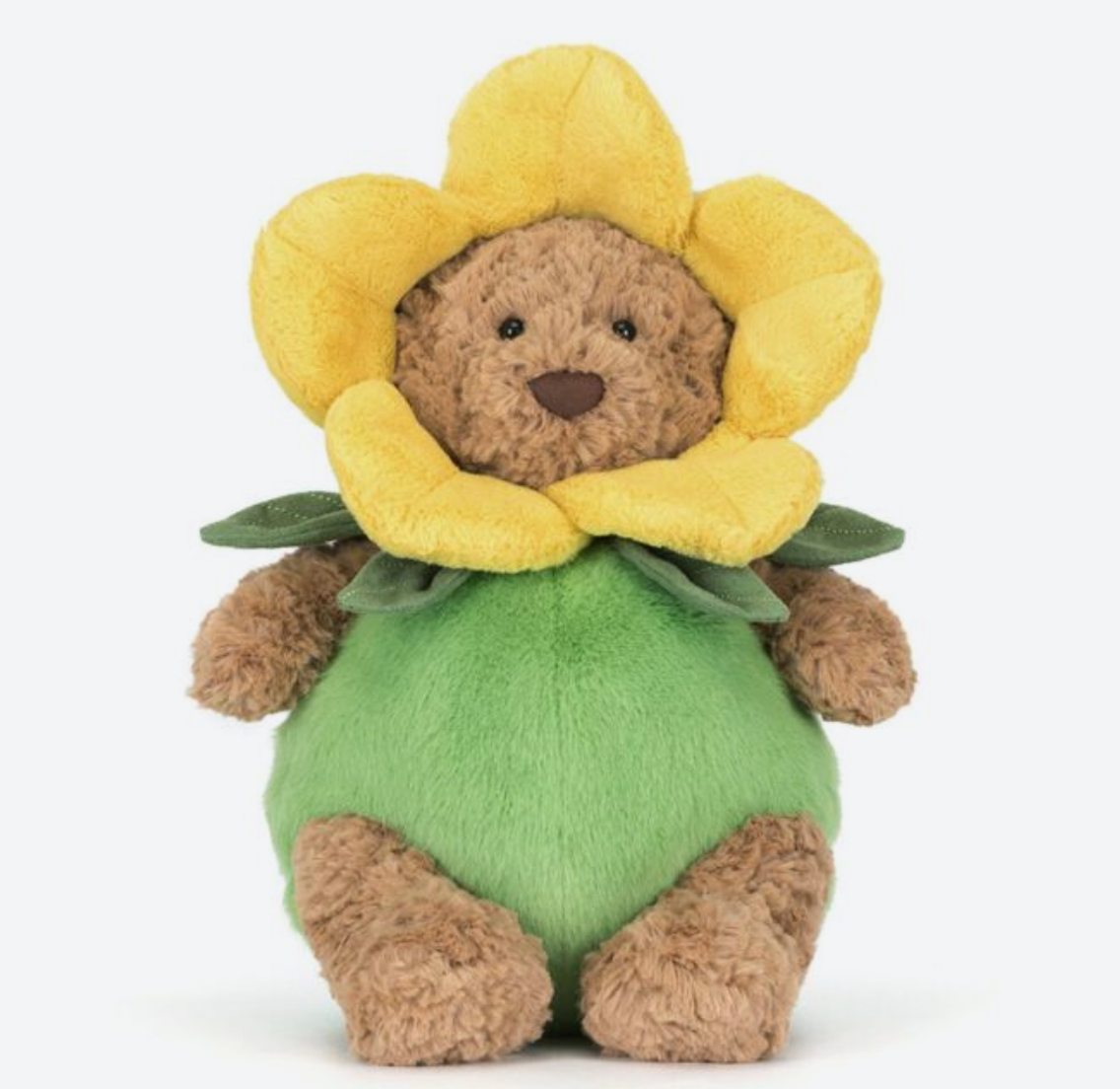 {"id":9150156079322,"title":"Jellycat Bartholomew Bear Daffodil Outfit","handle":"jellycat-bartholomew-bear-daffodil-outfit","description":"\u003cp\u003eBartholomew Bear Daffodil Outfit is blooming. Dressed head to toe in his sunny daffodil costume, he’s channeling pure flower power and sharing it generously with everyone he meets – by putting on a spring performance for his friends, naturally!\u003c\/p\u003e\n\u003cp\u003eBashful Bunny thinks this might just be her favorite Bartholomew outfit to date (do they come in bunny size?). Albee Bee can’t stop admiring it – he’s all abuzz with compliments.\u003c\/p\u003e\n\u003cp\u003eAnd Bartholomew himself? He’s never felt brighter!\u003c\/p\u003e\n\u003ch4\u003eFeatures\u003c\/h4\u003e\n\u003cul\u003e\n\u003cli\u003eDimensions: 10.2in x 5.9in x 5.9in\u003c\/li\u003e\n\u003cli\u003eSitting Height: 8in\u003c\/li\u003e\n\u003cli\u003eMain Materials: Polyester\u003c\/li\u003e\n\u003cli\u003eInner Filling: Polyester Fibers, PE Beans\u003c\/li\u003e\n\u003cli\u003eHard Eye\u003c\/li\u003e\n\u003cli\u003eRemovable Costume\u003c\/li\u003e\n\u003c\/ul\u003e","published_at":"2026-02-02T16:50:18-08:00","created_at":"2026-01-27T22:58:30-08:00","vendor":"Jellycat","type":"Toy","tags":[],"price":9000,"price_min":9000,"price_max":9000,"available":true,"price_varies":false,"compare_at_price":null,"compare_at_price_min":0,"compare_at_price_max":0,"compare_at_price_varies":false,"variants":[{"id":47542641590490,"title":"Default Title","option1":"Default Title","option2":null,"option3":null,"sku":null,"requires_shipping":true,"taxable":true,"featured_image":null,"available":true,"name":"Jellycat Bartholomew Bear Daffodil Outfit","public_title":null,"options":["Default Title"],"price":9000,"weight":0,"compare_at_price":null,"inventory_quantity":2,"inventory_management":"shopify","inventory_policy":"deny","barcode":"670983166514","requires_selling_plan":false,"selling_plan_allocations":[]}],"images":["\/\/littleleafbaby.ca\/cdn\/shop\/files\/ScreenShot2026-01-27at10.54.17PM.png?v=1769583424"],"featured_image":"\/\/littleleafbaby.ca\/cdn\/shop\/files\/ScreenShot2026-01-27at10.54.17PM.png?v=1769583424","options":["Title"],"media":[{"alt":"Jellycat Bartholomew Bear Daffodil Outfit - LittleLeafBaby","id":41419245781210,"position":1,"preview_image":{"aspect_ratio":1.029,"height":1104,"width":1136,"src":"\/\/littleleafbaby.ca\/cdn\/shop\/files\/ScreenShot2026-01-27at10.54.17PM.png?v=1769583424"},"aspect_ratio":1.029,"height":1104,"media_type":"image","src":"\/\/littleleafbaby.ca\/cdn\/shop\/files\/ScreenShot2026-01-27at10.54.17PM.png?v=1769583424","width":1136}],"requires_selling_plan":false,"selling_plan_groups":[],"content":"\u003cp\u003eBartholomew Bear Daffodil Outfit is blooming. Dressed head to toe in his sunny daffodil costume, he’s channeling pure flower power and sharing it generously with everyone he meets – by putting on a spring performance for his friends, naturally!\u003c\/p\u003e\n\u003cp\u003eBashful Bunny thinks this might just be her favorite Bartholomew outfit to date (do they come in bunny size?). Albee Bee can’t stop admiring it – he’s all abuzz with compliments.\u003c\/p\u003e\n\u003cp\u003eAnd Bartholomew himself? He’s never felt brighter!\u003c\/p\u003e\n\u003ch4\u003eFeatures\u003c\/h4\u003e\n\u003cul\u003e\n\u003cli\u003eDimensions: 10.2in x 5.9in x 5.9in\u003c\/li\u003e\n\u003cli\u003eSitting Height: 8in\u003c\/li\u003e\n\u003cli\u003eMain Materials: Polyester\u003c\/li\u003e\n\u003cli\u003eInner Filling: Polyester Fibers, PE Beans\u003c\/li\u003e\n\u003cli\u003eHard Eye\u003c\/li\u003e\n\u003cli\u003eRemovable Costume\u003c\/li\u003e\n\u003c\/ul\u003e"}